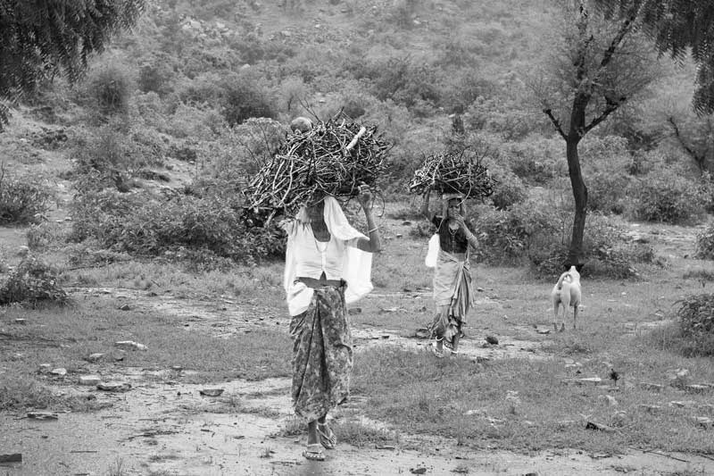 Fetching firewood from Bhairon Dev public sanctuary – a forest restored and conserved through community participation - in Bhaonta–Koylala village, district Alwar, Rajasthan