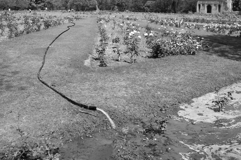 Irrigating rose plants in Lodi Garden with recycled wastewater in South-East district, National Capital Territory of Delhi
