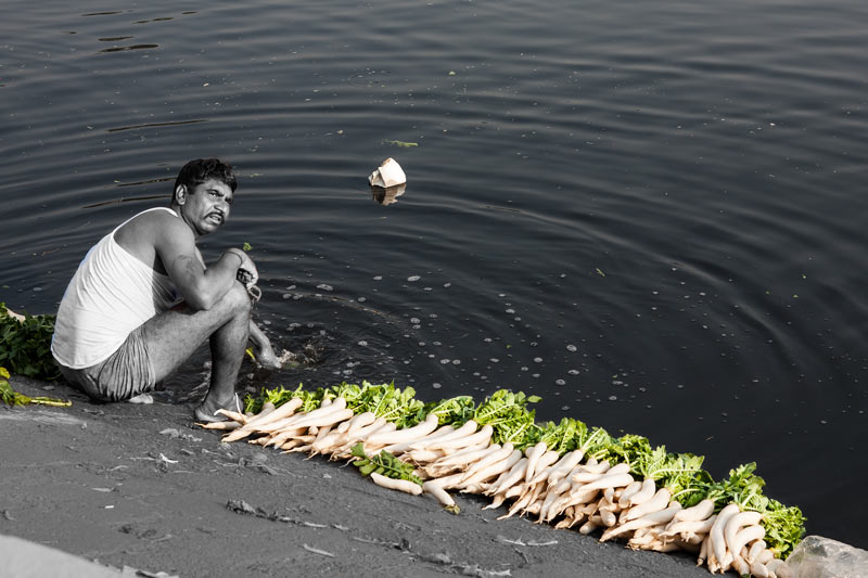 Wastewater reuse, which implies using wastewater or reclaimed water from one application for another application, offers multiple benefits for different water use sectors. This, in turn, has led to its promotion in recent times as the sustainable way forward for mitigating the increasing stress on water resources in terms of quality as well as quantity. In India, wastewater reuse, with or without recycle, has been in practice in different forms and for different purposes. This spans across agricultural, urban, industrial, recreational and environmental uses. Agricultural reuse of wastewater is most common with untreated or partially treated municipal and, in some cases, also industrial wastewater diverted for irrigation. Wastewater irrigation helps raise foodcrops as well as fodder, fruits and vegetables. Large-scale washing of vegetables for the market may also be carried out using wastewater. In some urban areas, wastewater is reused for landscape irrigation such as in parks, school yards, highway medians, golf courses, and private residential lawns. Common industrial reuse comprises its utilization in processing, cooling and in boilers. Recreational use primarily comprises maintenance of water volume in lakes and pools where boating and other recreational activities are organized. Environmental reuse primarily involves restoring and maintaining surface water bodies such as lakes and streams, as well as recharging underground aquifers. In its reuse, wastewater is undoubtedly a valuable resource that not only consists primarily of water which can be put to the similar uses as freshwater, but also contains nutrients for crops such as phosphorous and nitrogen, which otherwise need to be applied externally through fertilizers. However, while best benefits are achieved when adequately recycled wastewater is reused, in India the trend is to reuse wastewater that is either raw or only partially treated. This raises serious concerns regarding human as well as environmental health. This current trend of reuse can thus thwart the enjoyment of human rights by women, men and children, particularly to water, health, culture and development and also pose challenges to sustainable development through multiple pathways. This photo story aims to present some reflections over the practice of wastewater reuse in India. The title photo depicts radish being cleaned for the market using wastewater from Agra Canal in South-East district, National Capital Territory of Delhi.
