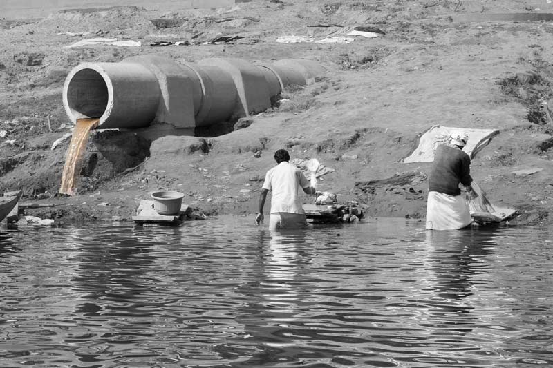 On the banks of river Ganga in Varanasi, untreated sewage is often diverted into the river from the municipal sewerage system due to nonfunctioning of STPs on ground of power cuts or technical problems. Sewage often contains high concentrations of chemicals from soaps, detergents and other cleaning agents which facilitate easy cleaning of clothes which is also more efficient and cost-effective. Consequently some washermen prefer to clean clothes at points where raw sewage is discharged into the river. However, untreated sewage also contains fecal coliform count (FCC) as high as 80,000/100ml while safe limit for bathing is less than 500/100ml, according to standards set by the Central Pollution Control Board (CPCB). Wearing of clothes washed with such microbially polluted water thus pose high risk of infection to the users. Reuse of sewage-containing water for laundry is a practice quite common in many cities and towns in the country.