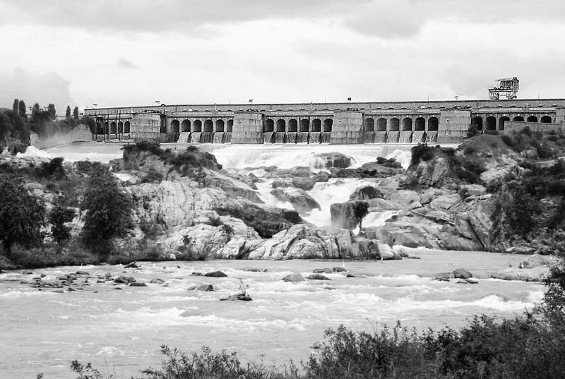 Krishna Raja Sagara Dam which produces hydropower from river Kaveri waters in Mysore-Mandya districts, Karnataka