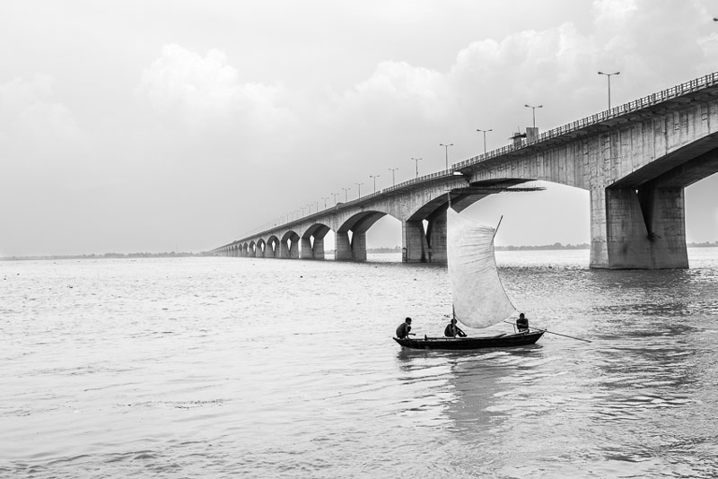 River Ganges and Mahatma Gandhi Setu at Patna, Bihar. Width of the river here stretches from 4-6 kilometers