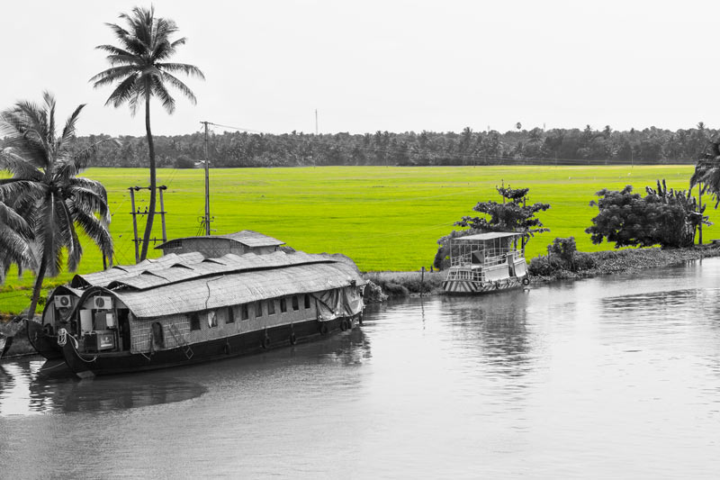 The irrigation system in Kuttanad is enabled through strong ring bunds which keep the lake water out of the padsekharams, and sluices in these bunds which enable the entry of water from the lake into the fields. Excess water is bailed out from the fields into narrow channels that ultimately drain into the lake. The traditional mechanism of bailing out water was by turning large multi-pedal wheels called chakram, which have been replaced in recent times by Axial Flow Pump which is a ‘box and drum’ type pump used for ‘pumping out’ water from the fields rather than ‘pumping-in’. This kind of pump is unique to the Kuttanad region in the agricultural sector in India. Through its unique below sea level irrigation system, Kuttanad accounts for about 25% of the rice production in the state, earning it the title of the ‘rice bowl of Kerala’.