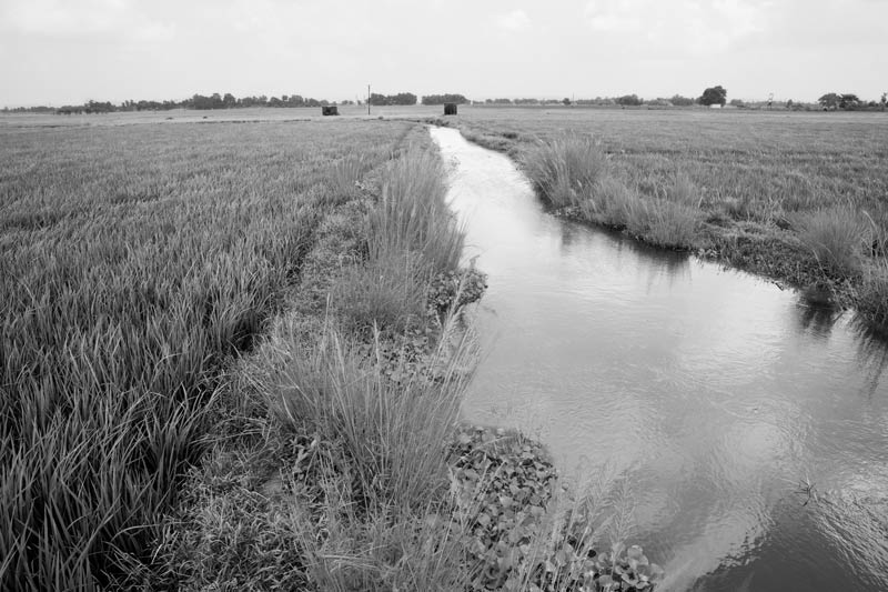 Paddy fields irrigated by a canal from Shanti Sagara in Davangere district, Karnataka
