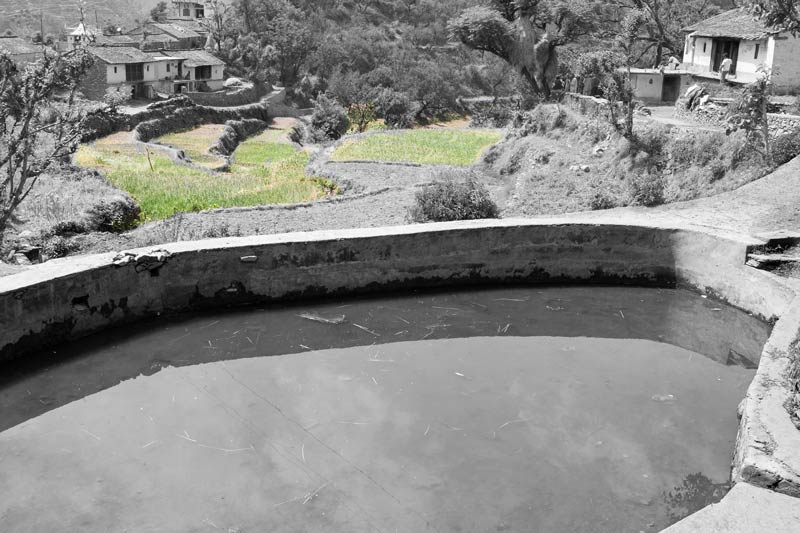 In the Himalayan state of Uttarakhand, rainfed natural springs are harvested for fulfilling multiple water needs of village communities, villages being located along hill slopes. In many places, these springs are protected by concrete structures to prevent soil erosion as well as water pollution. Religious value is often attached to these structures and washing, bathing and pollution of the source in any way is strictly prohibited. Known as chahal, these are generally multi-purpose, providing water for drinking, livestock and agriculture.